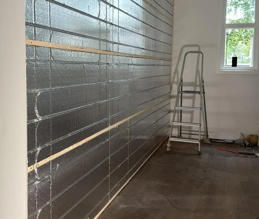 Wandverwarming verwarmt je woning via de muren in plaats van de vloer. Hierdoor verspreidt de warmte zich gelijkmatig door de ruimte, zonder luchtcirculatie of koude zones. Het systeem is volledig onzichtbaar weggewerkt achter de wandafwerking en zorgt voor een comfortabele stralingswarmte die vergelijkbaar is met zonnewarmte.